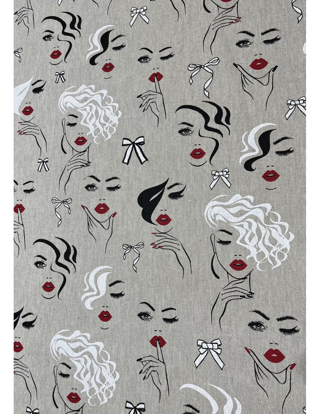 Tissu coton et polyester ,thème visage femme,idéal pour la confection de sacs, coussins, pochettes, cartonnage, patchwork, etc...