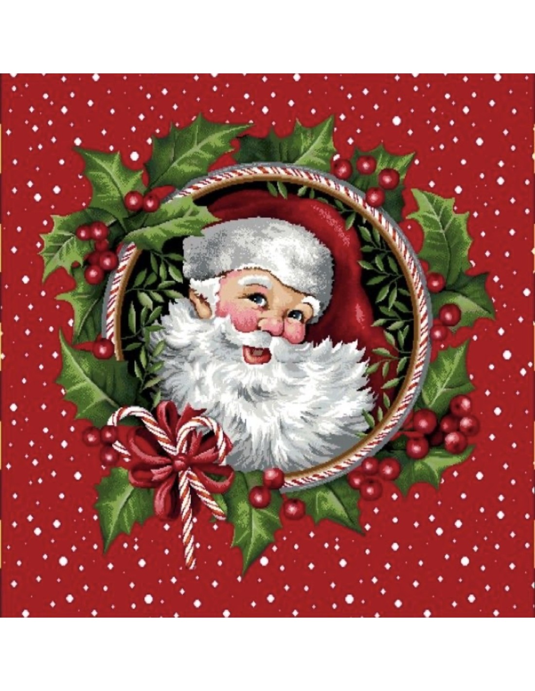 Carre- Père Noël couronne fond rouge