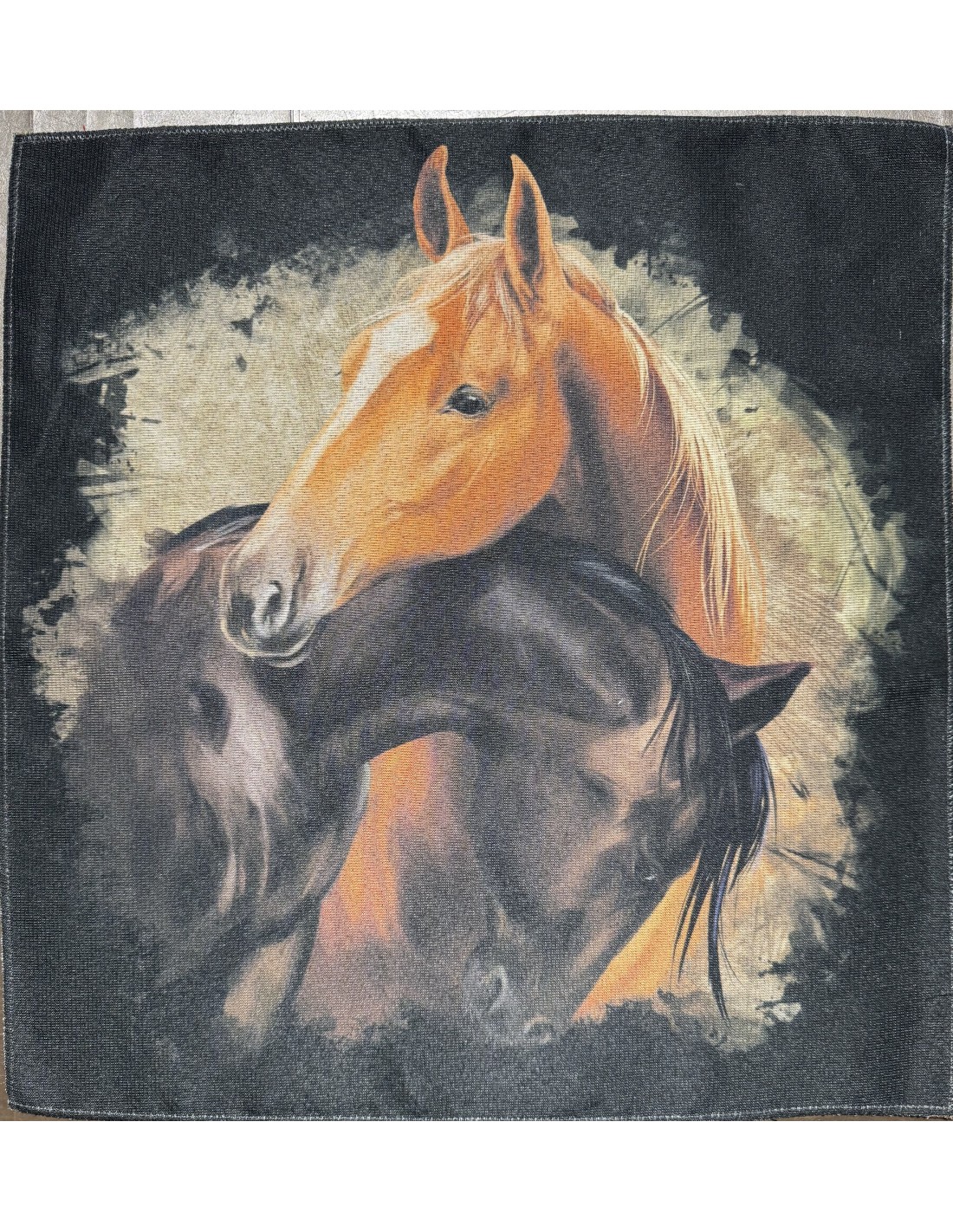 Carré polyester -chevaux.