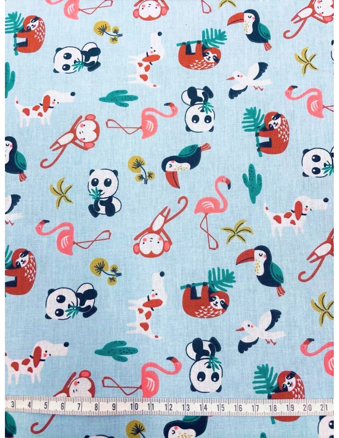 Coton 150 - Animaux du monde fond bleu ciel