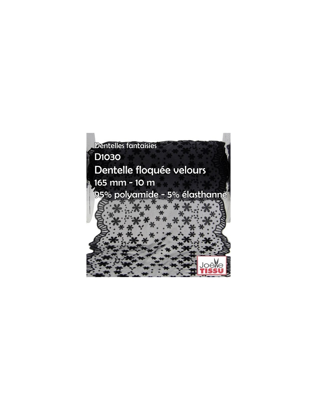 Mercerie - Dentelle floquée velours noir 175mm