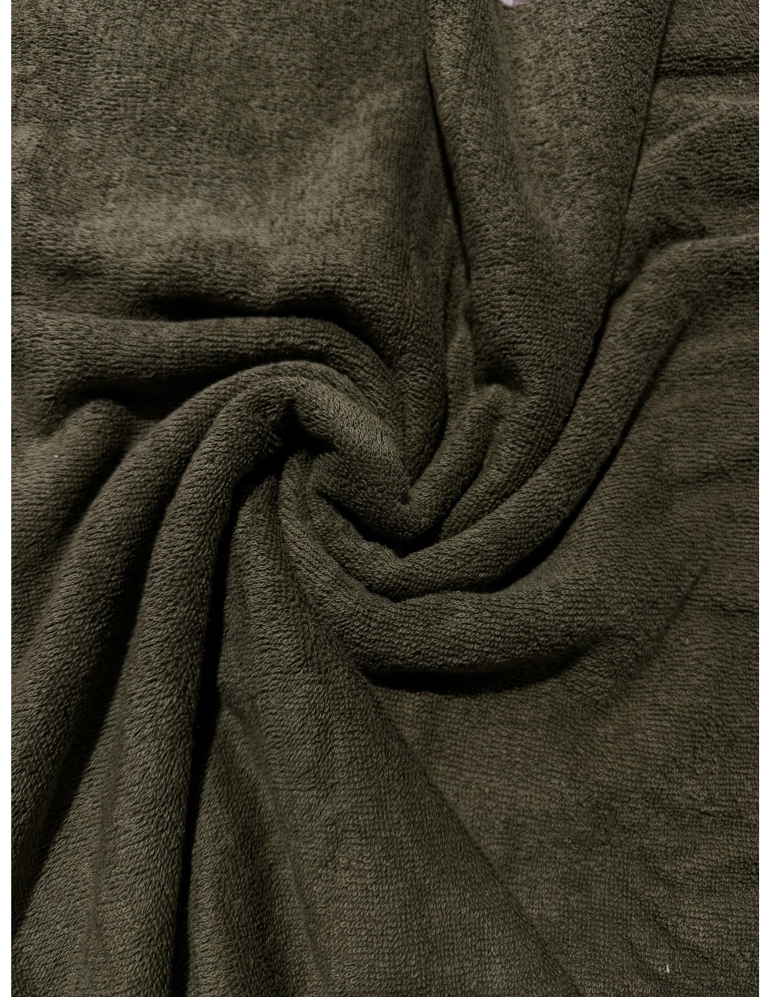 Tissu éponge couleur vert kaki en 150cm de large, 100% coton, 440g/m²