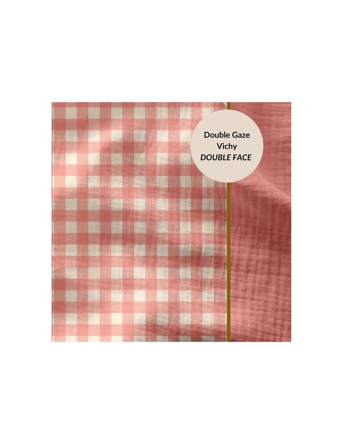 Tissu d'habillement double gaze de coton double face ,un cote vichy et un cote uni, idéal pour la confection de vêtements : T-shirt, robes, jupes, doudou,gigoteuse ,lange, bandeaux, etc...