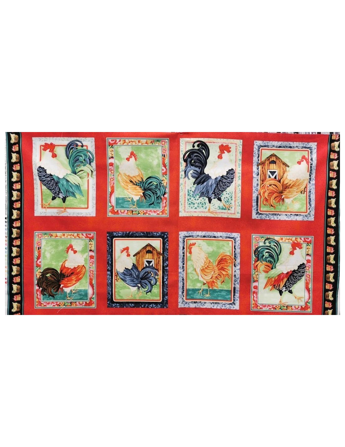 Panneau de coqs idéal pour décoration, dessus de lit, plaid, jeté de canapé, tableau, patchwork, quilting, etc...