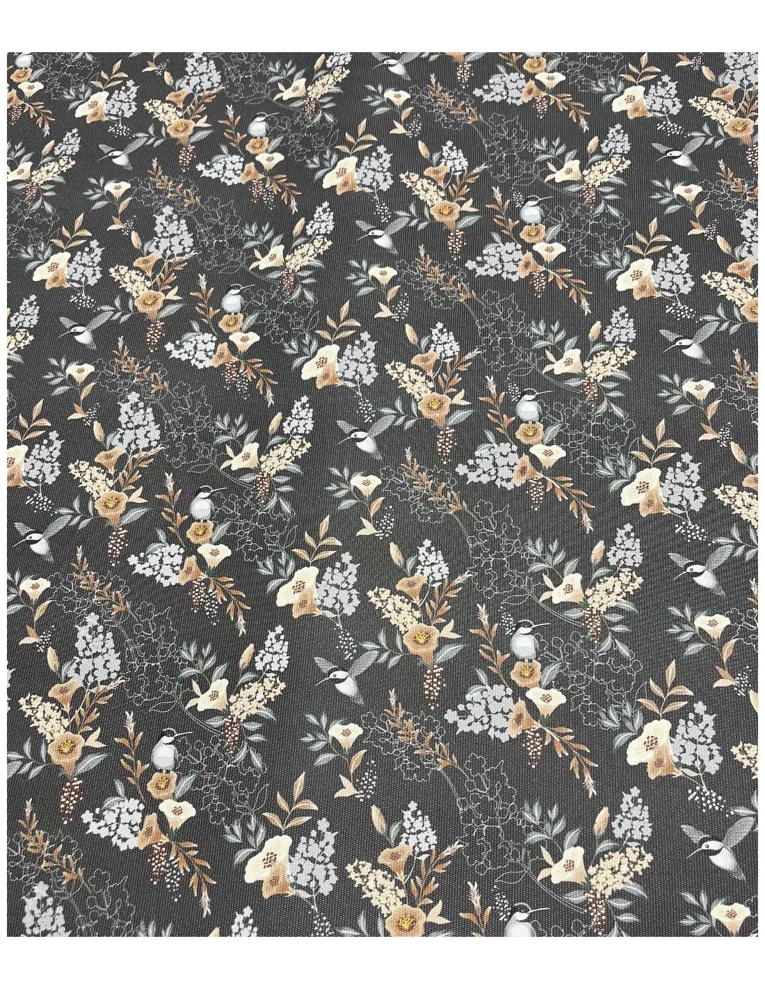 Simili cuir - Oiseaux fond gris anthracite