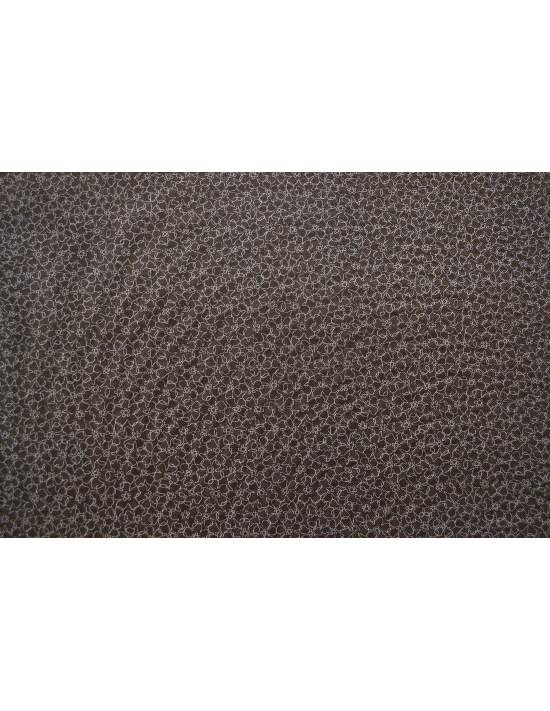 Tissu Stof fond marron avec motif fleurs blanches, idéal pour le patchwork, cartonnage, habillement, sac, trousse...