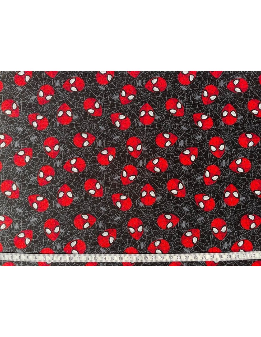 Tissu Spiderman noir et toiles d'araignées, idéal pour la confection de coussins, sacs, trousses, pochettes, etc...